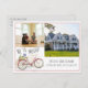 Vintages rotes Fahrrad mit einem Korb von Blume, Aquarell neue Zuhause-Ankündigungskarte. "We've Moved", Adresskartenwechsel mit zwei Fotos. Laden Sie zwei Ihrer beliebtesten neuen Zuhause-Fotos hoch und personalisieren Sie den Text mit Ihrer neuen Adresse.