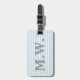 Tadellos adretter hellblauer und weißer Seersucker striped Gepäckanhänger mit einem grauen kundengerechten Monogramm für den Weltreisenden mit einem Fall vom Wanderlust.