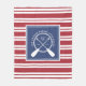 Adrette Decke in Rotem, in Blauem und Weiß für Ihr Seehaus. Fügen Sie Ihren Familiennamen, Initiale hinzu, und das Jahr hergestellt einem Seemonogramm der gekreuzten Paddel über einem Seilkreis. Die Decke kennzeichnet auch die roten und weißen Streifen.