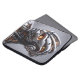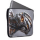 Carry your mobile workstation in a protective sleeve that looks exactly as advanced as the technology inside it. This premium laptop sleeve features a breathtaking, hyper-detailed portrait of a futuristic silver chrome cyborg. The incredibly intricate mechanical wiring and the intense, warm orange glow radiating from the android's eyes create a truly cinematic sci-fi aesthetic that stands out brilliantly against the neutral gray background.