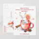 Diese bezaubernde Weihnachtspostkarte zeigt eine skurrile Abbildung eines weißen, in einer gemütlichen, roten Tasse mit orangefarbenen Scheiben, Zimtsticks und Sternanis geschmückten Hasen. Der zauberhafte Ausdruck der Sonne und die warmen, festlichen Farben schaffen eine angenehme und einladende Atmosphäre. Die Postkarte ist mit Ihrer eigenen Nachricht und dem Namen des Absenders anpassbar, was sie zu einem personalisierten und nachdenklichen Urlaubsgruß macht.