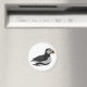Adorable Atlantic Puffin Cartoon illustriert von der Seitenansicht. Der Kopf dieses hübschen Vogels dreht sich, um seine Schnabelmarkierung zu zeigen. Der Vogel verlasse eine Wasserwelle.
