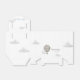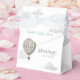 This boho chic "Adventure Awaits" boy's baby shower favor box features a blue hot air balloon and clouds. Personalize it for your needs. You can find matching products at my store.