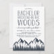 Celebrate the groom-to-be with an invitation that sets the tone for a weekend of brotherhood and the great outdoors. Featuring a striking hand-drawn aesthetic, this design captures the spirit of the wilderness with a touch of modern sophistication. The bold, sketched mountain range and evergreen forest silhouette, paired with a stylish mix of hand-lettered and clean sans-serif typography. Whether you're planning a hiking trip, a fishing retreat, a cabin getaway, or a weekend of white-water rafting, this design fits any "into the woods" itinerary. The monochromatic navy-on-white color palette provides a timeless, masculine look that stands out in a mailbox. Easily personalize the guest of honor’s name, dates, location, and RSVP information to suit your specific event.