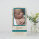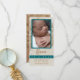 Front: Grosses Baby Foto in der Farbe Ihrer Wahl mit Namen, Datum und Geburtsinformationen. Hallo Welt Abenteuer Thema Zurück: Baby Ankündigung Foto mit Kompass Rahmen über eine Vintage Karte. Oh, die Orte, wo du hingehen wirst.