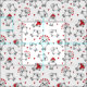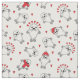 Adorable weiße Stoffe gemustert mit niedlichen, weißen Siegel-Welpen mit Winterhut und Schals, umgeben von roten Herzen
