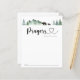 Babydusche Gebetskarte mit immergrünen Aquarellen, Bergen und Mama mit Babybär.
