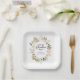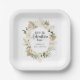 Ein niedlicher Teller aus Babydusche mit einem blühenden Rahmen im bohenhaften Stil mit cremefarbenen Blumen, Pampas-Gras und Palmetto-Blätter. Erdige Töne von Creme und Grün. Lass das Abenteuer mit wenig rosa Herz beginnen.