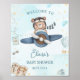 Adventure Cute Bear Blue Plane Boy Baby Shower Poster