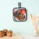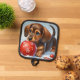 Niedliche Dackel Welpe mit einem roten Weihnachtsball in einer schneebedeckten Winterlandschaft. Freude, Unschuld und Charme der Urlaubssaison mit lebhaften Farben und fröhlicher Atmosphäre.