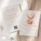 Diese niedliche Babydusche lädt mit einem süßen Teddybär in einem rosa gestreiften Heißluftballon mit rosa Blume rund um den Korb ein, über den Worten "Abenteuer wartet!" in rosa Retro-Schrift. Personalisieren Sie den Text mit dem Namen der Mama-to-be im Skript und die Details in Sans Serif Schriftart auf einem beigen Hintergrund. Auf der Rückseite finden Sie Platz für eine Windelverlosung, Bücher für das Baby und Registrierungsdetails sowie einen komfortablen QR-Code, den Gäste scannen können, um die Registrierung zu besuchen. Ideal für eine Babydusche eines Mädchens.
