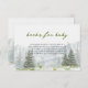 Mit unserer "Books for Baby"-Karte können Sie Ihre Babydusche mit einer besonderen Touch versehen, die perfekt auf das bezaubernde Motto "Lass the Adventure Begin" abgestimmt ist. Diese Karte ist perfekt für eine naturlich inspiriert Feier und vereint das Wesen der Berge, Waldtiere, Kiefernwälder und die Wunder der Wildnis in einem charmanten Aquarelldesign, das die Erholung Ihrer abenteuerlichen Dekoration ergänzt. Ermutigen Sie Freunde und Familie, ihre Lieblingsgeschichten für die Kleinen mit dieser wunderschön gestalteten Karte zu teilen. Illustriert mit sanften Farbtönen von Grüntönen und Braun, erinnert das Design an eine gemütliche Waldlandschaft mit bezaubernden Waldtieren, mächtigen Kiefernbäumen und rauen Berggipfeln, die den Geist eines neuen Abenteuers widerspiegelt. Mit einer nachdenklichen und einladenden Nachricht fügt die Karte "Bücher für Baby" Ihrem Duschbad ein unvergessliches, personalisiertes Element hinzu, das den Gästen die Möglichkeit bietet, an einer Bibliothek mit Geschichten teilzunehmen, die neben Ihrem Baby wachsen. Egal, ob es sich um geliebte Klassiker oder neue Entdeckungen handelt, jedes wird ein gepflegter Teil der Reise werden und bleibende Erinnerungen schaffen, während man auf das bestste Abenteuer von allen - Elternschaft - eingeht.
