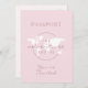 Die Babyduschen zum Thema Reisen sind eine besonders unterhaltsame Idee für Eltern, die in der ganzen Welt waren und in Zukunft planen, ihr Kleines mit ihnen zu nehmen, und unsere Pink Baby Dusche Pass Einladung ist einfach der perfekte Weg, um die Gäste zum Spaß mit der Formulierung "das Abenteuer beginnt" einzuladen, die unabhängig von der Dekoration mit Stildusche funktionieren wird. Die in Rosa und Lila gehaltenen Farben sind modern und etwas trendig, wirken aber noch über Jahre klassisch.