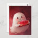 Ein niedliches Gespenst mit einem Toast, der in einem Yummy-Konfitüre verkleidet ist.