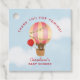 Niedliches Abenteuer Thema Babydusche Gefallen Tag mit einer Abbildung eines braunen Teddy Bären auf einem rosa und gelben Heißluftballon mit einem roten Ballon. Es gibt Imitate goldene Glitzer-Fahnen um den Heißluftballon. Im Text oben steht: "Danke, dass du gekommen bist!" Ideal für die Dusche eines Mädchens.