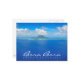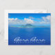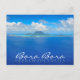 Postkarte mit Luftbild über die tropische Insel Bora Bora mit türkisfarbener Lagune im Pazifik bei Tahiti in Französisch-Polynesien mit dem Text: "Bora Bora, Französisch-Polynesien".