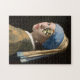 The design of this puzzle is a combination of Johannes Vermeer's painting "Girl with a Pearl Earring" and surrealist art.
