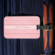 Pink colour design featuring a seamless vertical wood pattern with a minimalist aesthetic. Perfect for luggage tags and other travel bag tags.
