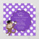 So sehr niedlicher Kindergarten-Abschluss, der einen entzückenden kleinen Affen in einer Kappe hält ein Diplom-Set auf einem lila u. weißen Polkapunkthintergrund kennzeichnet. Personifizieren Sie mit Ihren Partyinformationen und Sie sind alles Set, zum zu gehen! Zusammenpassend danke die Anmerkungen, Aufkleber u. Porto, die in unserem Geschäft an www.celebrateitinvites.com ©Cocoa Studio verfügbar sind
