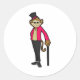 Affe als Gentleman mit Hut & Walking-Stick Runder Aufkleber