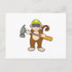 Affe als Handwerker mit Hammer Postkarte