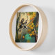 Eine Wanduhr mit einem lustigen Bild, das einen Affen darstellt, der in einem tropischen Dschungel lebt und irgendwo aussieht