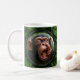 Humoristischer Mug mit einem realistischen Schimpansen in der Grimasse, der seinen Finger in die Nase steckt. Ein perfektes Bild, um einem Freund zu bieten, ein Büro zu besetzen oder die Amateure von humorvollen Bildern zu überraschen.