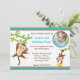 Laden Sie die Freunde Ihr Kindes zu ihrem folgenden Geburtstags-Party mit dieser kundengerechten blauen Affegeburtstags-Party Einladung ein. Eigenschaften zwei niedliche Affen, die von den Baumniederlassungen hängen und ein Foto Ihres Kindes.