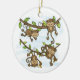 Monkey Shine-T - Shirts, Taschen, Tassen, Karten, Aufkleber, Schlüsselanhänger, Kissen, Zeitschriften, mousepads und anderes Affekleid und Geschenkeigenschaften vier niedliche braune Affen, die von den Baumniederlassungen schwingen und Bananen gegen einen Himmel des Blaus essen.