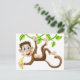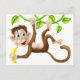 Ein niedlicher Affe, der von Weinbergen mit einer Banane in der Hand schwingt