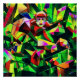 A.I. erstellte Interpretation eines Affengesichts entsteht inmitten der Winkelmuster des umgebenden Blätterdaches, während es seine Umgebung beobachtet
