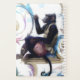 Whimsikales Gemälde eines Affen blasen Blasen, umgeben von pastellfarbenen Wirbel von blau, rosa, gelb und lila.