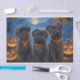 Entfesseln Sie den unheimlichen Geist mit diesem unheimlichen Halloween-Design, das eine Hundepackung unter einem dunklen, mondbeleuchteten Himmel bietet, umgeben von fliegenden Fledermäusen und glühenden Kürbissen. Ideal für diejenigen, die mit ihren wütenden Freunden eine Touch voller Furcht Liebe haben!