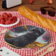 Affenpinscher Hund auf einem Paddle: Ein Landschaf Pappteller