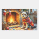 Affenpinscher Sitting Fireplace Christmas Lights Rechteckiger Aufkleber