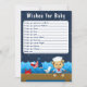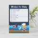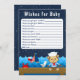 Diese niedlichen und lustigen Wünsche für die Babykarte sind mit einem Seemann-JungenAffen auf einem Holzdeck mit Seemöle und Krabbe ausgestattet. Im Hintergrund ist ein niedlicher roter Vogel auf einem Segelboot, Meereswellen und ein marineblauer Sternenhimmel. Der Text verbindet fett- und serifenlose Schriftart für ein stilvolles und modernes Aussehen. Das ist ideal für eine Babydusche zum Thema Wassersport.