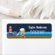 Ein bezaubernder Seefahrer-Junge Affe sitzt auf einem Holzdeck mit einer Möwe und einer Krabbe. Im Hintergrund befindet sich ein roter und weißer Leuchtturm, ein niedlicher Vogel auf einem Segelboot, Meereswellen und ein marineblauer Sternenhimmel. Grafiken von PixelPaperPrints und DigitalCurio