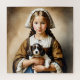 "Wohlhabende Unschuld" "Cornelia" Mädchen mit Welpe": In dieser fesselnden Darstellung des aristokratischen Lebens im Holland des 17. Jahrhunderts steht ein junges niederländisches Mädchen als Symbol für Wohlstand und Unschuld, ihre zarten Merkmale beleuchtet durch ein sanftes Lächeln, während sie einen flauschigen Welpen in ihren Armen krabbelt. Mit ihren in eleganten Orten verzierten Haaren und ihrem Kleid, das ihrem privilegierten Status gerecht wird, strahlt sie eine Atmosphäre der Raffinesse und Anmut aus. Die Welpe, die sich gegen sie stinken lässt, spiegelt ihre jugendliche Unschuld mit ihrem eigenen seelenvollen Blick wider und schafft ein harmonisches Tableau aus Freundschaft und Zärtlichkeit.
