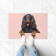 The soft blush pink background adds a sophisticated and modern touch, making it perfect for stylish home decor. With extra space at the top and bottom, this design is ideal for personalization—add names, welcome text, or custom messages to create a unique and elegant dog-themed doormat or gift.