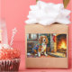 This elegant Christmas illustration features a regal Afghan Hound sitting beside a warm fireplace, wrapped in soft glowing Christmas lights with festive stockings hanging above. The breed’s iconic flowing coat and graceful posture add sophistication and beauty to this cozy holiday scene. Perfect for Afghan Hound lovers, holiday décor enthusiasts, and Zazzle shoppers seeking unique Christmas artwork that highlights their favorite breed.