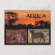 Africa Sunset & Big Cats Postcard zeigt drei atemberaubende Naturfotos, die mit einer 35-mm-Kamera von Kurt Keller während einer Afrikanischen Safari in Simbabwe, Südafrika und Botswana aufgenommen wurden. Ein Acacia Sunset, Cheetah Stare und Tau (Löwe in Tswana) alle während einer Safari im Busch in Botswana aufgenommen. Dieser atemberaubende Sonnenuntergang und das wilde tierische Foto sind ein perfektes Geschenk für Naturliebhaber, Sonnenuntergangsliebhaber, Tierfreunde, große Katzenliebhaber, Löwen-Lieben, Geparden-Liebhaber und Fotografen. Genießen Sie die Schönheit der Natur mit diesem schönen Foto eines afrikanischen Sonnenuntergangs und vergessen Sie nicht, die Schönheit mit einem Freund zu teilen, indem Sie ihnen einen schönen Sonnenuntergang und wilde Tiere Postkarte schicken.