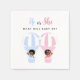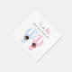 These charming napkins feature an African American baby girl in a pink hot air balloon and a baby boy in a blue one, both waving from the sky. Surrounded by soft clouds, the design brings a whimsical touch to your gender reveal celebration. Easily personalize the text for your special event.