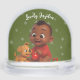Celebrate your little one’s very first Christmas with this adorable personalized snow globe. Featuring a cute African American baby boy in festive holiday colors, this keepsake makes a heartwarming gift for families to treasure year after year. Customize with your baby’s name for a unique holiday decoration.
