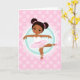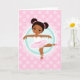 Niedliche afroamerikanische Ballerina in einem rosa Tutu, darstellend und arabesque. Rosa Polka Punkte und minzgrün Akzent.