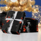 Ein Holiday-Design eines Kongo Afrikanischen Gray Papagei mit einem Haufen von roten Weihnachtsschmuck und Bogen aus ihrem Schnabel.