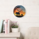 African Safari Sunset Elephant Silhouette Art Große Wanduhr