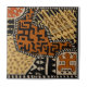 Afrikanische Stammeslandschaft, bräunlicher Rost, Virginia Vivier, Vagabond Folk Art, Wall Hanging, Tischwäsche, Bettwäsche, bohemianisches Dekor. bohemianisches Dekor, afrikanischer Shaman, afrikanische Stammeerkirche.