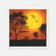 Schöne digitale Kunst afrikanische Sonnenuntergangsszene mit Bäumen, Vögeln und Sternen.