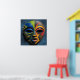 The African Tribal Mask Cubism Abstract Poster is a vibrant artwork which showcases a stylized African tribal mask with a symmetrical design divided into four color zones: green, blue, yellow, and red. Geometric patterns enhance each section, while deep-set eyes and a polished finish add depth. Set against a dark blue--green textured background, the piece radiates cultural richness and bold artistry.