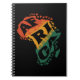 Farbenfrohe afrikanische Landkarte in Rot, Gelb und Grün mit schwarzem "Afrika" Textdesign und Dekoration ethnischer Formen